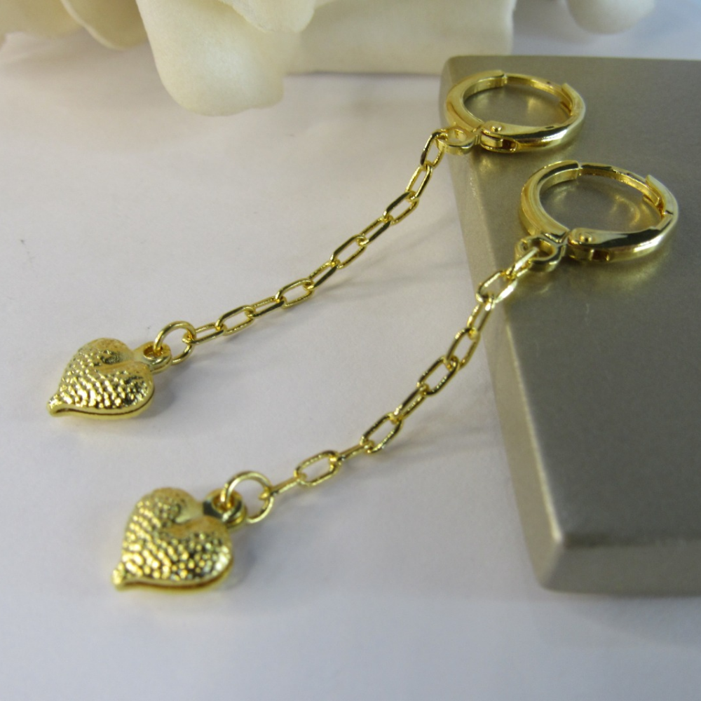 Este brinco de argolinha apresenta um charmoso detalhe de corrente com um coração, banhado em ouro 18k, proporcionando um visual delicado e elegante. O design versátil torna esta peça perfeita para uso diário ou para ocasiões especiais, adicionando um toque de estilo ao seu visual. Ideal para quem busca uma joia encantadora e cheia de personalidade, este brinco é uma escolha versátil para diversas ocasiões.