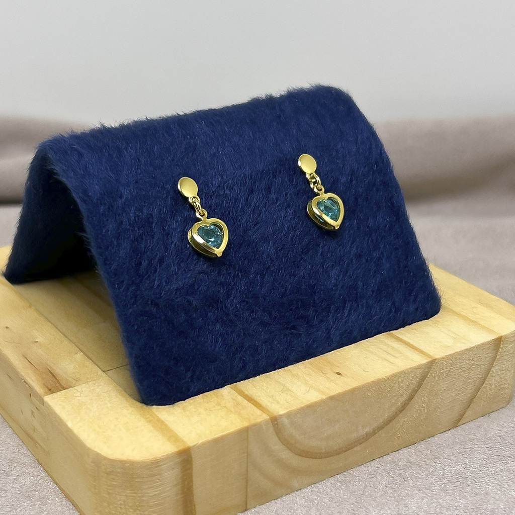 Brinco pendurado em formato de coração com strass colorido BANHADO A OURO 18K Dimensões / Peso: