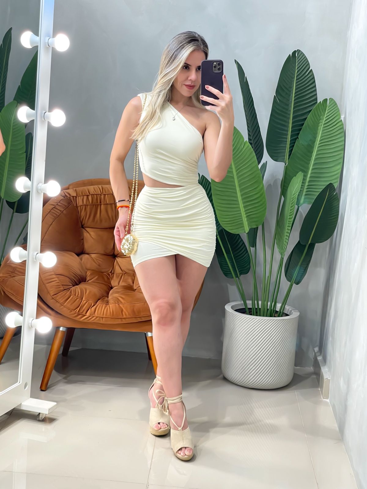 Vestido Curto em Poliamida Ombro Único Plissado Nayara Ref. 1849